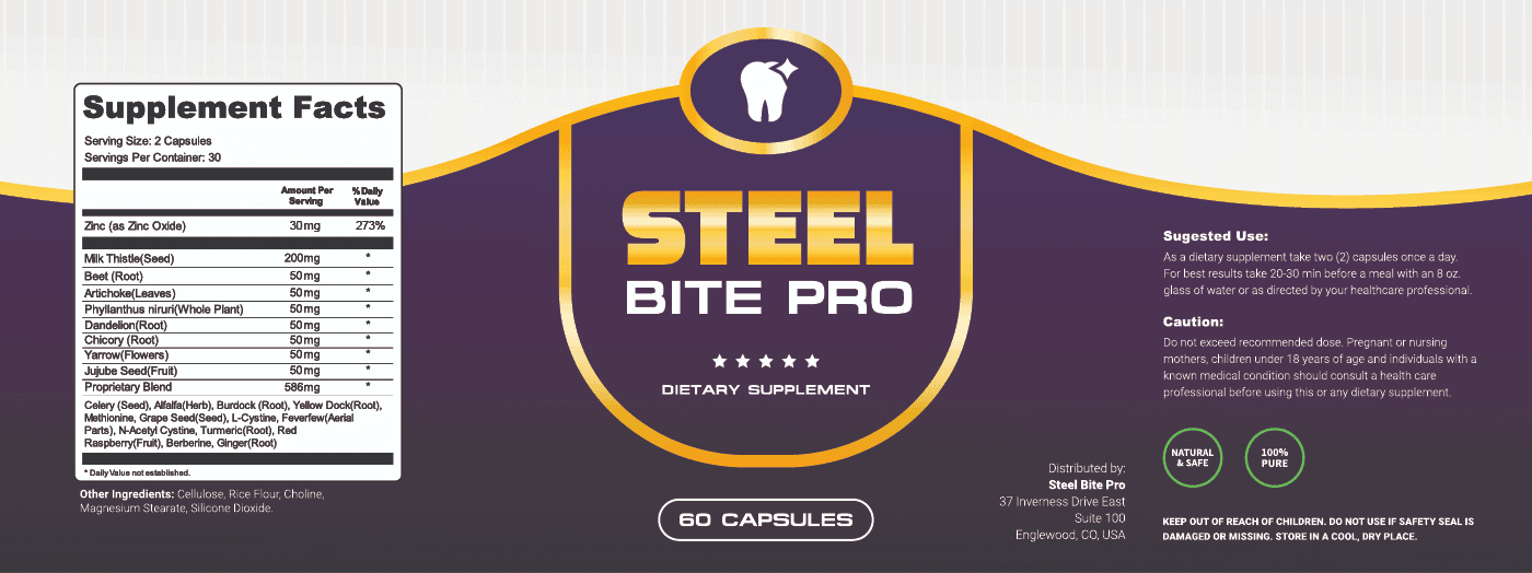 The formula is based on purification, detoxification and strengthening. The ingredients inside Steel Bite Pro help to oppose harmful bacteria, start figthing toxins, and assist in replenishing the natural supply of vitamins and other nutrients, that our mouths lack so often.